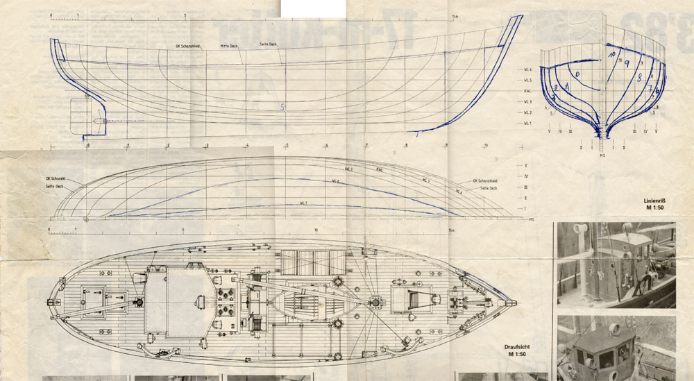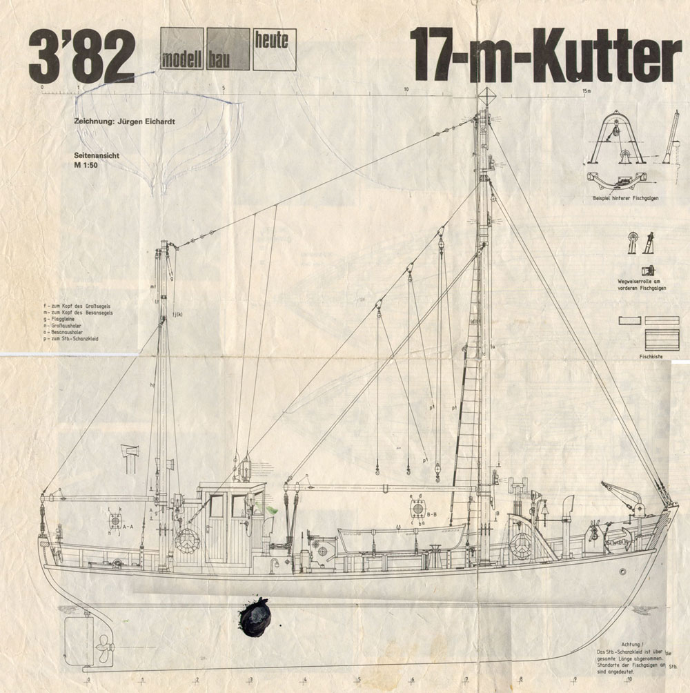 Den Fischkutter habe ich nach einem Plan aus der Zeitschrift "Modellbau Heute" aus dem Jahre 1982.